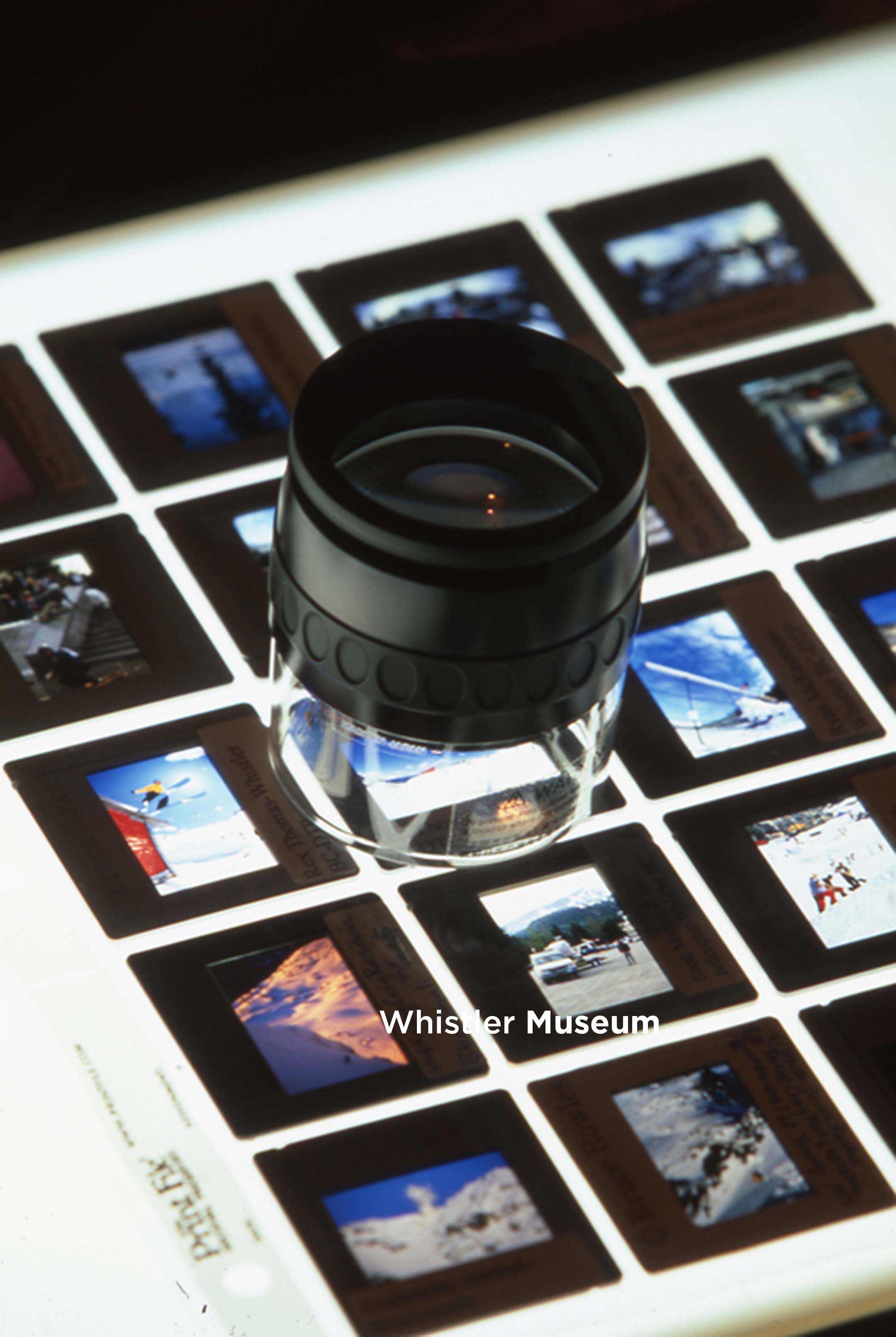 This mindset shaped how I approached the project of organizing the Bruce Rowles Collection. This collection of 35mm slides, documents, posters, and much more was generously donated by the family of Bruce Rowles in batches from 2024 to 2026. Comprising over 70,000 slides, it is now the largest photographic collection in the Museum’s archives. Working with it offered me the chance to get to know Whistler as Bruce saw it, while also viewing glimpses of the life behind the camera.